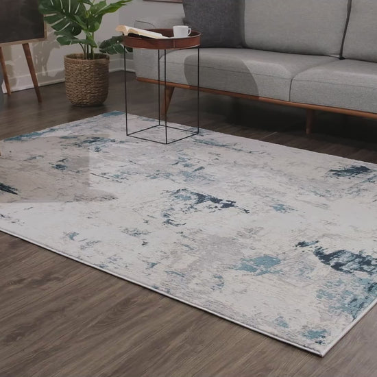 Amara Abstract Contemporary Blue and Cream Indoor Rug