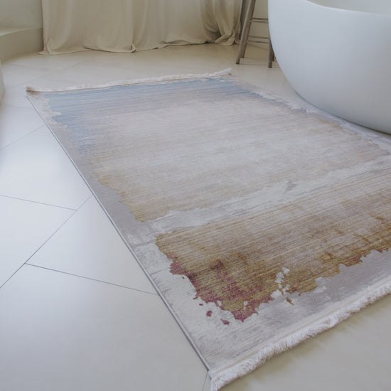 Elaris Abstract Contemporary Beige and Blue Indoor Rug Details