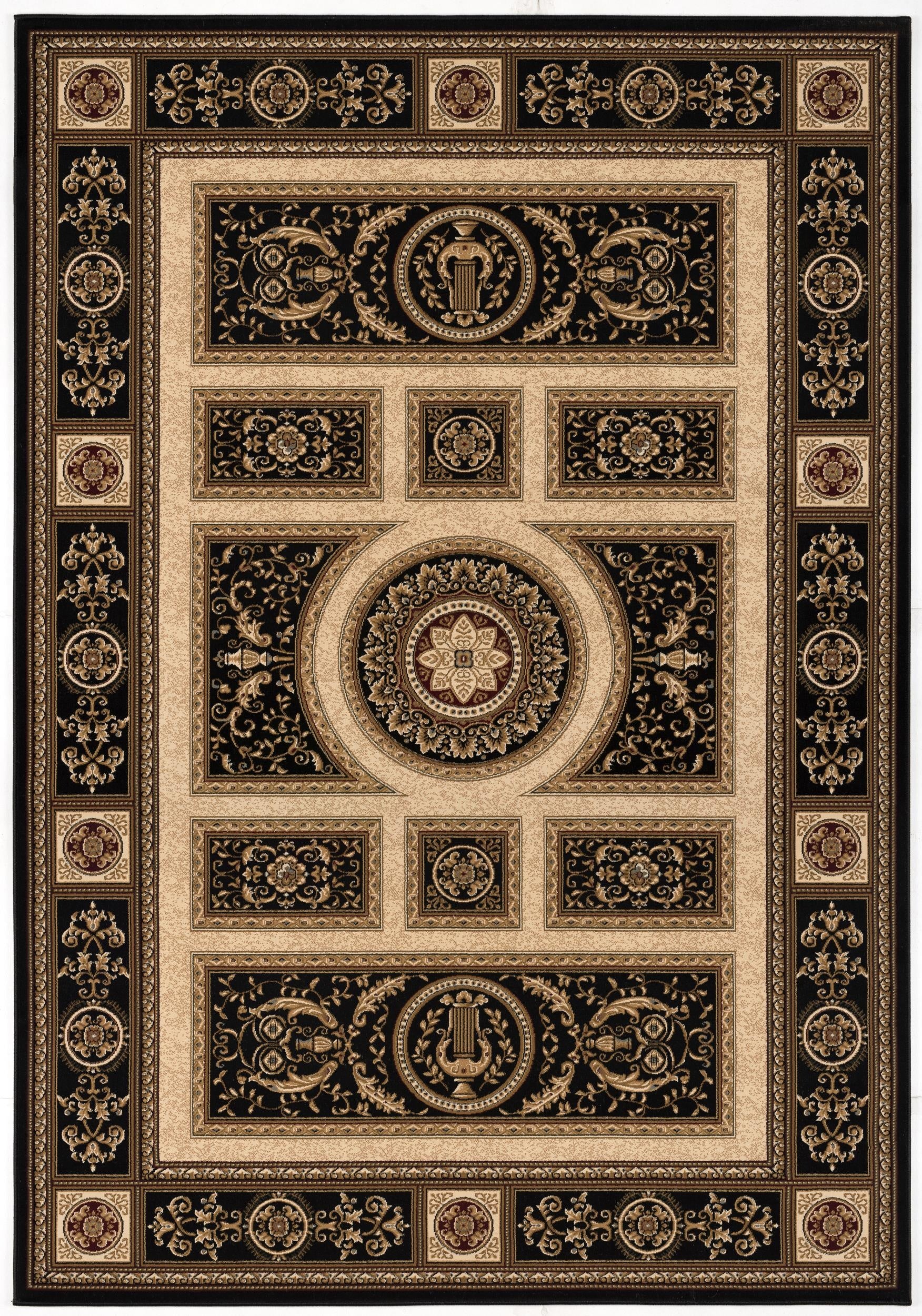 Fajr Floral Medallion Traditional Black and Beige Indoor Rug Details