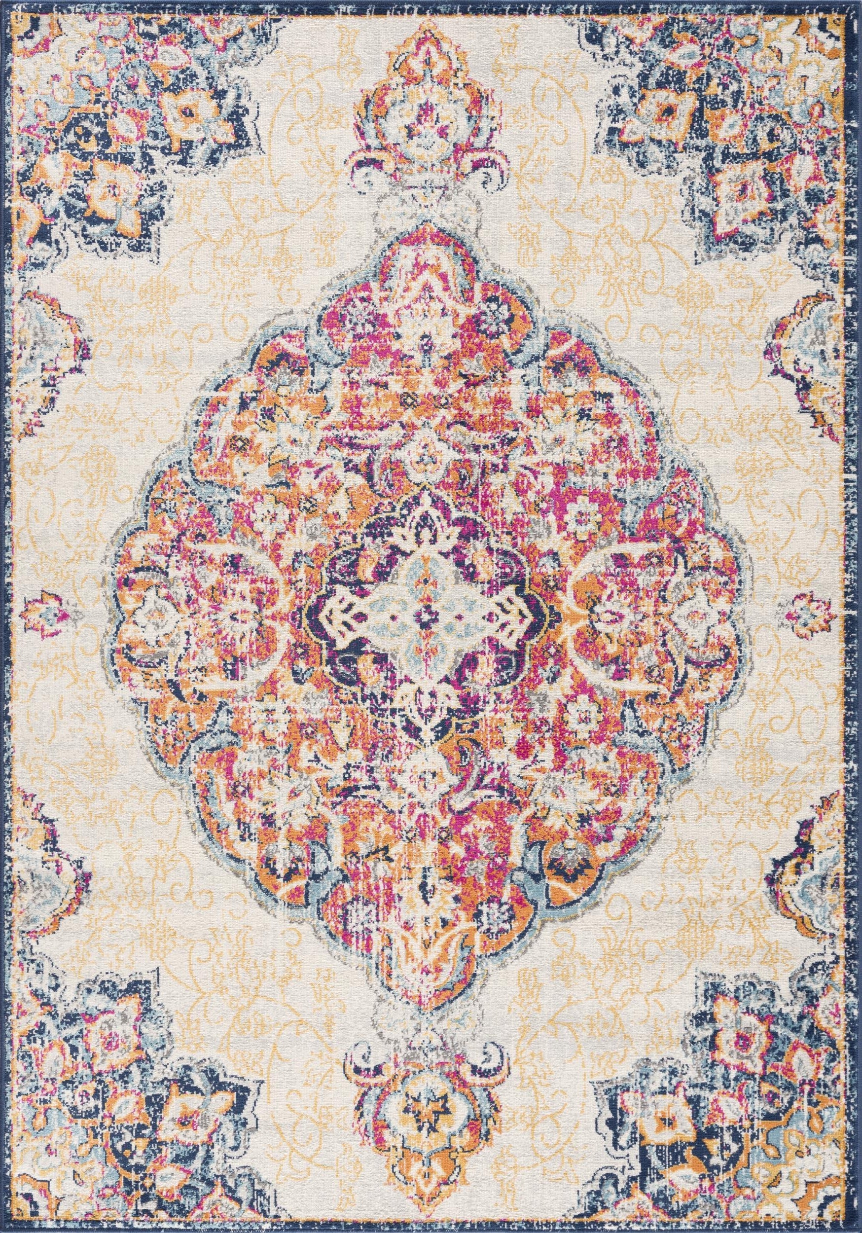 Floria Floral Medallion Traditional Pink and Cream Indoor Rug