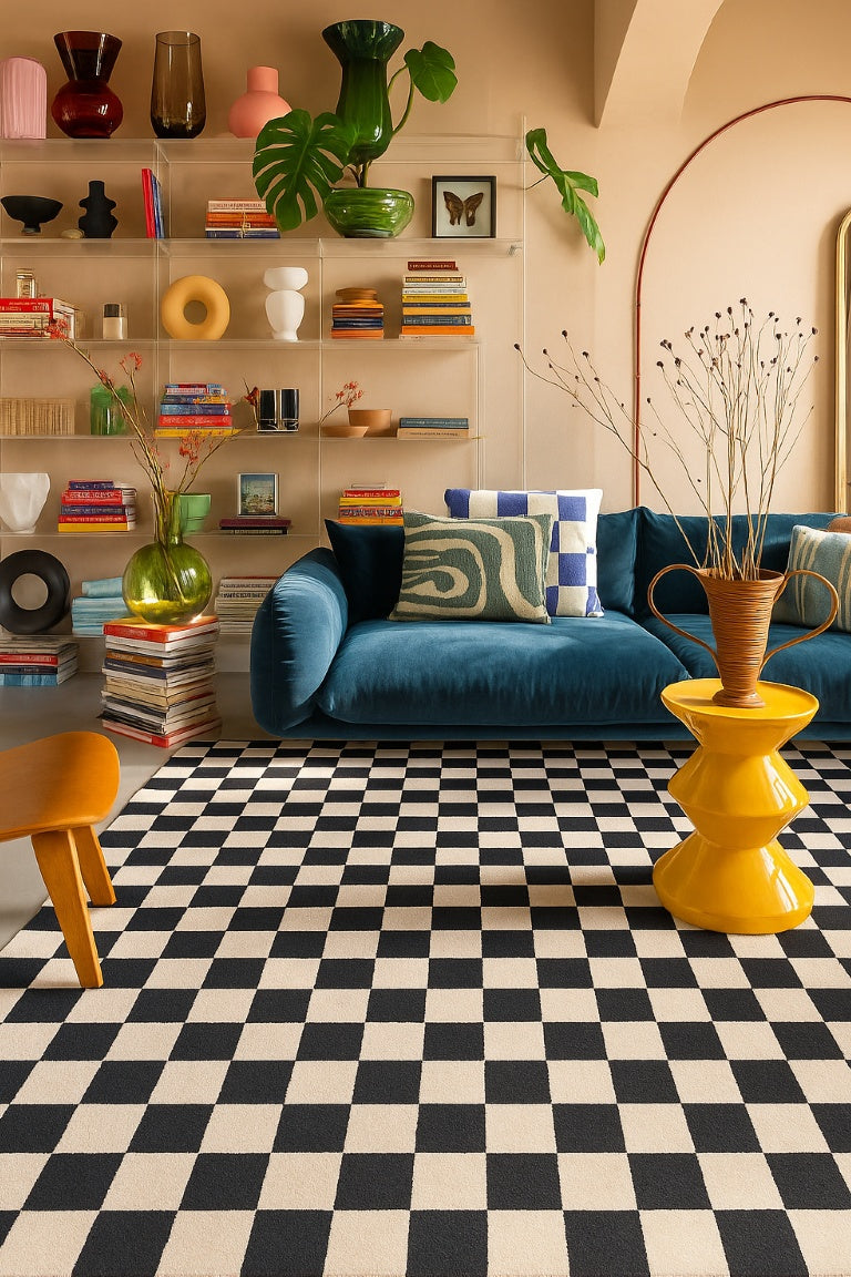 Jaque Checkered Modern Black and White Indoor Rug Details