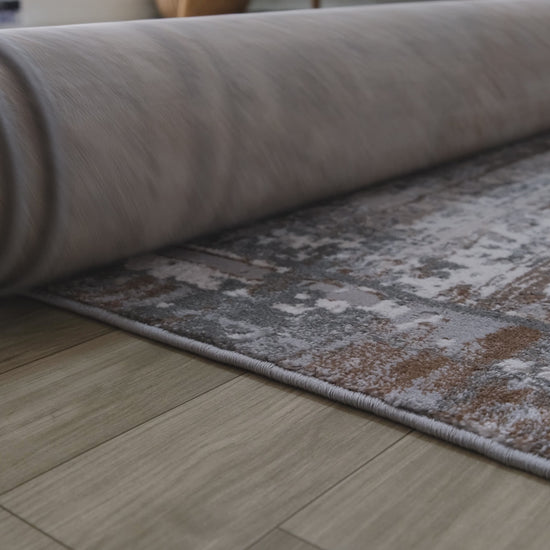 Kora Distressed Geometric Transitional Brown and Grey Indoor Rug Details