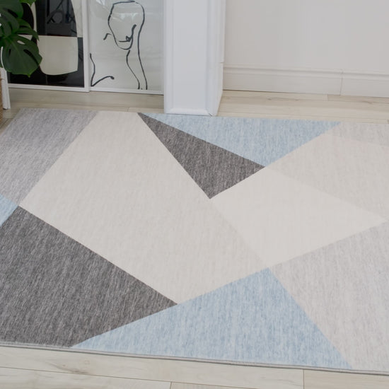 Luca Abstract Mid-Century Modern Blue and Grey Indoor Rug Details