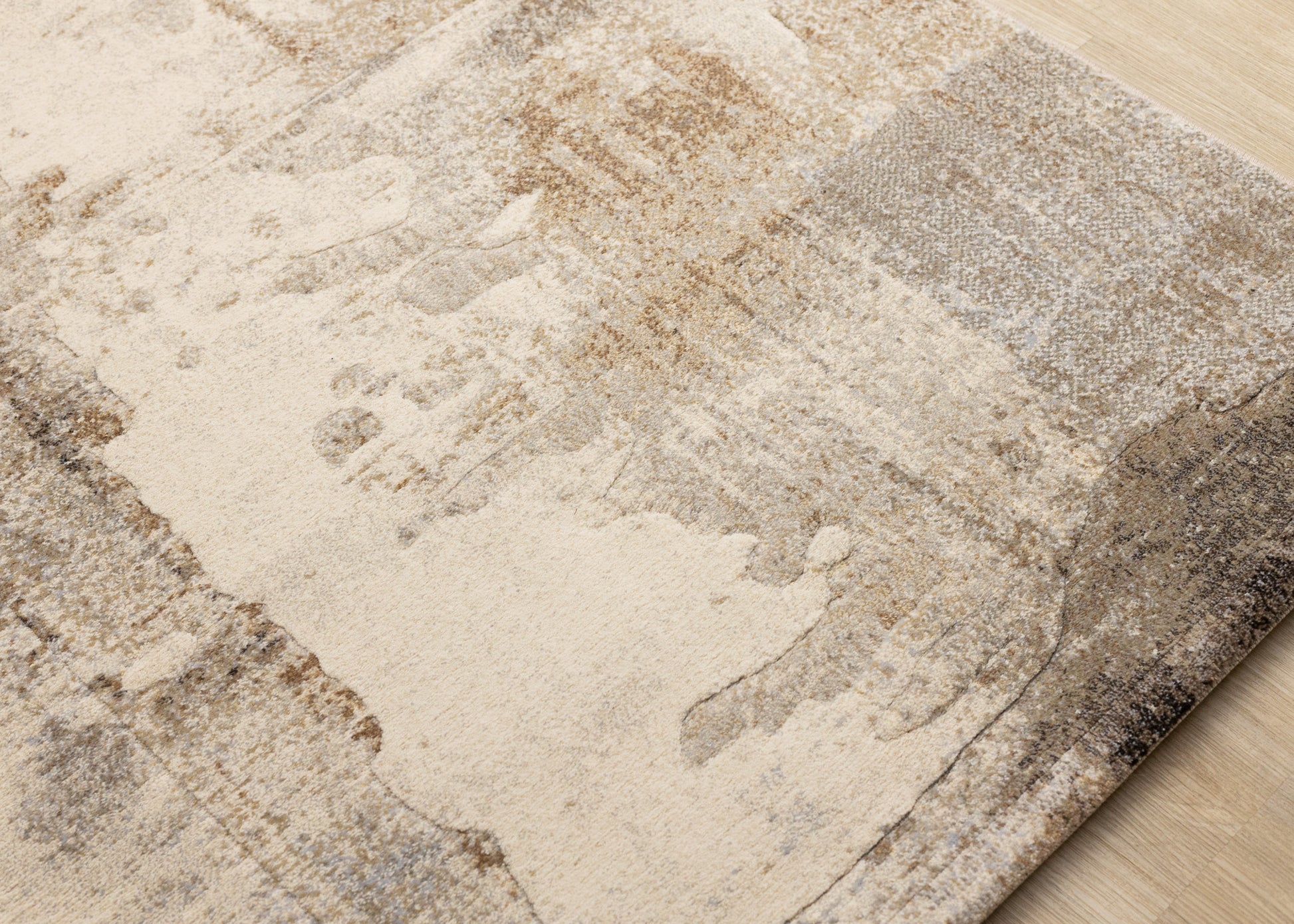 Contemporary Distressed Geometric Cream Area Rug Details