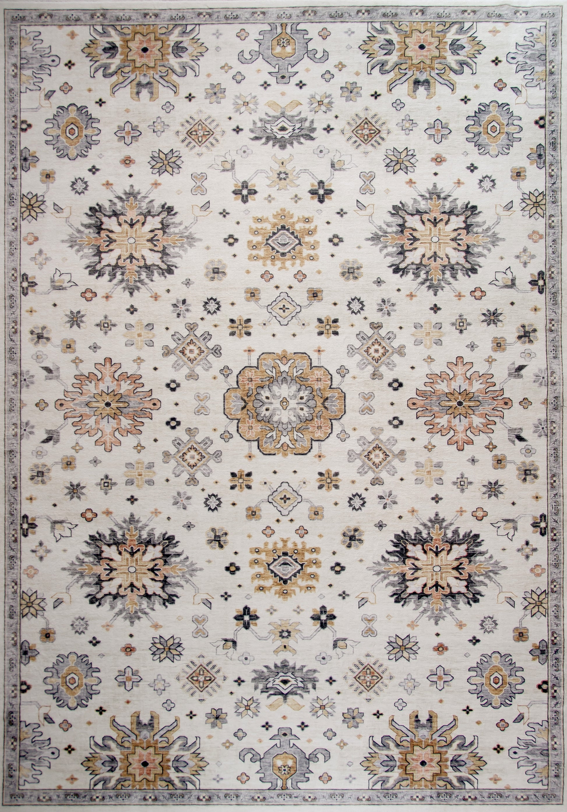 Roshin Medallion Traditional Cream and Gold Indoor Rug Details