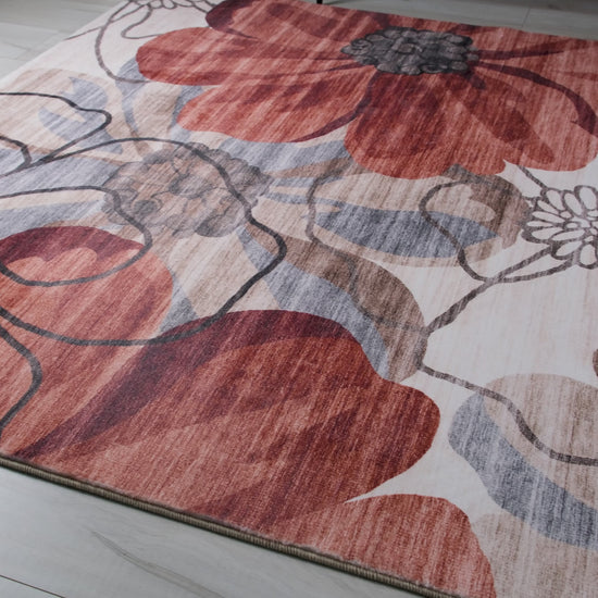 Sakura Floral Modern Red and Beige Indoor Rug Details